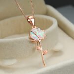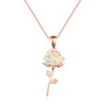 • Keywords: Rose, Blooming, Romance, Pendant, Iridescent, Rose Gold Necklace, Floral.