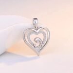The pendant features a polished Silver-Toned Heart that creates a protective frame around an abstract, elegantly sculpted figure of a mother cradling her child. An inner heart, accented with a row of shimmering pavé-set stones, adds a layer of brilliant light and sophistication to the design. The intertwined silhouettes symbolize an embrace that lasts forever.