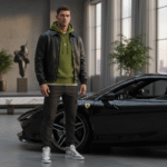 Stroid Men’s Retro Frock Quilted Jacket – Diamond Stitch Pattern, Lightweight